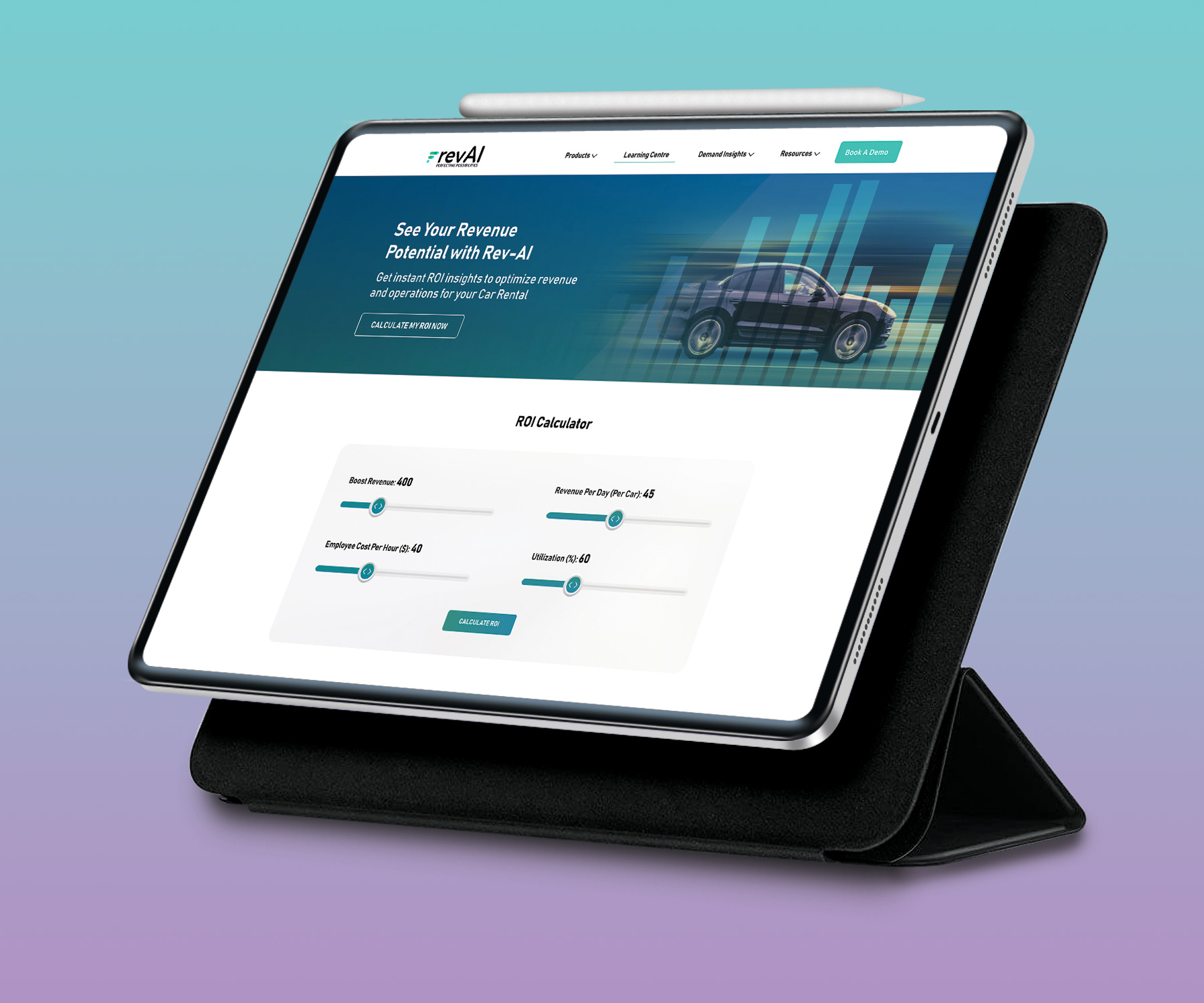 Designed an intuitive and user-friendly UI for the Rev-AI ROI Calculator, enabling car rental enterprises to gain instant ROI insights. The landing page simplifies complex data, empowering businesses to optimize revenue and operations with actionable intelligence. The design focuses on clarity, engagement, and seamless navigation, ensuring a superior user experience.